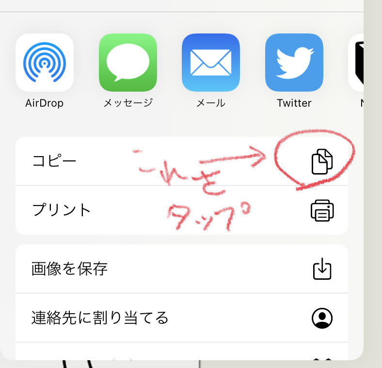 次にコピーのアイコンをタップすると、iPadのメモリー内に画像が記憶されます。記憶されたらワードプレスにペーストです。簡単でいいですね!これならブログに画像をどんどん入れられそう。華やかになりそうです。