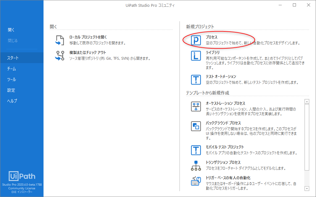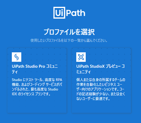 「UiPath Studio Pro コミュニティー」をクリックします。