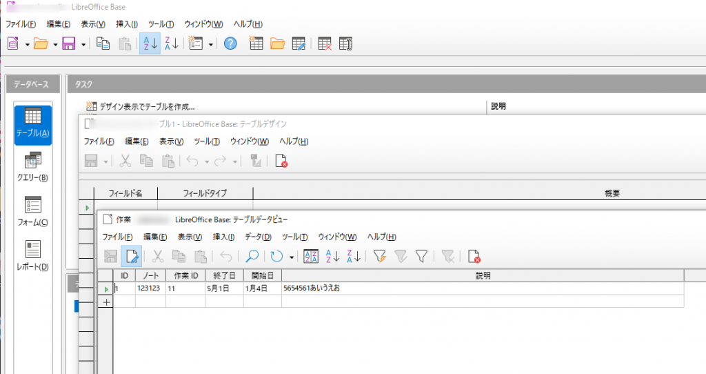 そう思って探してみたらありました「LibreOfficeのbase」という、まるでMS-ACCESSのようなツールが。フリーで使えるようですね。凄いなぁって思いました。