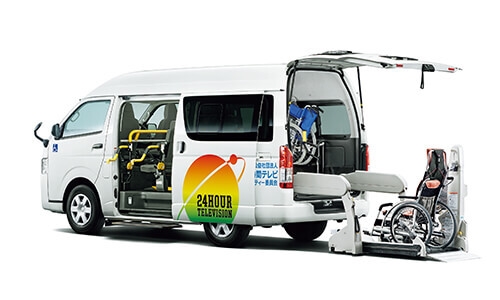 このような車いすを乗せられる車両を贈呈しているようですよ。
